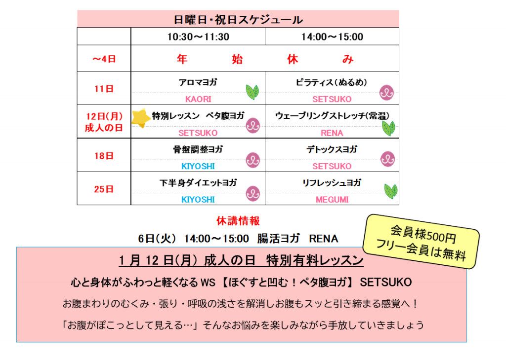 12月・1月 スケジュール